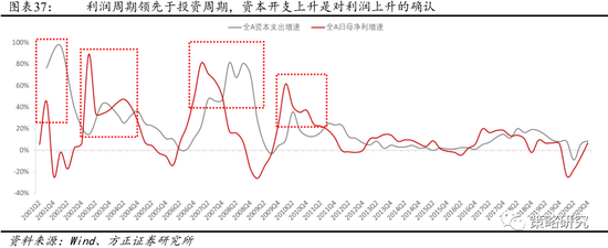 产能扩张代表了企业当前与未来的盈利向好预期。对于企业产能扩张而言,对规模经济的追求是直接原因,而根本原因则是在竞争中对最大利润的追逐。当行业处于资本开支底部,产能持续出清,而当下游需求出现时,供需的改善带动企业营收与利润的增长,企业对未来经济的乐观情绪将支撑扩产能投资,从而带动固定资产新增投资。所以,利润的可持续是最主要的驱动因素,而扩产能则是企业盈利上行的直接佐证。在经济复苏周期中,行业资本支出既能反映当前行业盈利景气度,同样反应未来需求的持续以及盈利的不断上升预期。