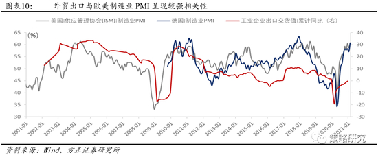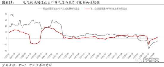 疫后制造业供给替代逻辑仍将延续,出口高景气或带动固定资产投资增加。2020年,由于新冠疫情对全球产业链造成冲击,中国凭借较早的复工复产成为全球市场的主要供给力量,中国的全球贸易市场份额出现逆势提升。展望2021年,随着疫苗在全球范围内的有序接种,市场担忧出口转单效应减弱,然而我们认为出口景气度今年仍将持续。首先,新冠疫苗由于全球产能有限,发达国家必优先于新兴市场接种,传统制造业国家短期内仍难以恢复疫前正常生产秩序;其次,美国自2020年三季度开启补库存周期,零售商、批发商库存增速持续快速回升,美国补库需求将对我国出口形成牵引。由于外贸需求景气度的可持续性,企业对2021年盈利存在较强乐观预期,从而具有增加资本开支、扩大产能的动机。从历史数据看,工业企业出口交货值增速与制造业固定资产投资增速具有较强的正相关性。我们梳理了出口占比较高的前两大行业,计算机、通信和电子设备制造业(过去13年平均占比40%)和电气机械及器材制造业(平均占比9%)的海外需求对行业固定资产投资存在较大影响。整体来看,2021年在外需保持景气的情况下,相关出口产业链或将展开积极扩产能。