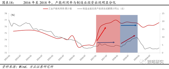 需求的持续性是决定企业扩产能的核心因素。从逻辑推演看,产能利用率与产能投资呈现较强正相关关系和紧密的跟随性,即终端需求的增长将带动现有产能的充分利用,并最终驱动企业增加产能投资,从而提高供给以满足需求。然而,生产与制造的背离在历史上也时有发生。2016年3月至2018年12月,工业企业产能利用率快速大幅上升,但制造业固定资产投资增速却继续维持低位,直至2018年3月才最终迎来小幅回升。究其原因,我们认为两方面原因压制了企业增加资本支出的积极性。从政策端看,2015年底的中央经济工作会议首次提出“三去一降一补”任务,随后“供给侧结构性改革”配合债市“去杠杆”在2016年全面铺开,导致中小企业由于融资困难无法扩产,并推动周期、制造业进一步产能去化,最终使得钢铁、煤炭领域产能利用率触底回升,装备制造业产能利用率持续高于工业平均水平。从业绩端看,2016年至2018年期间,供给侧改革确实使钢铁、煤炭、化工等周期行业业绩明显改善,但业绩的改善并未拉动制造业投资的复苏,去产能政策是直接原因,但更深层次的是中国经济增速逐年下滑对企业投资信心的压制。2010年GDP增速阶段见顶后持续快速下行,虽然在2016年一季度经济增速企稳甚至有所回升,但“权威人士”在同年5月的《人民日报》中首次将中国经济发展趋势定调为“L型”,并表示探底阶段不是一两年能过去的。面对中国经济进入存量时代,企业盈利恶化的表征是国内外短期需求的不足,但实质是中长期的供需错配,这也直接导致了供给侧改革的实施。所以当企业盈利改善后,面对未来需求或者经济前景的不确定,其主动扩产能意愿明显不足。所以,短期的需求改善并不足以支撑企业增加产能支出,对经济的乐观预期才是决定企业扩产能的核心因素。