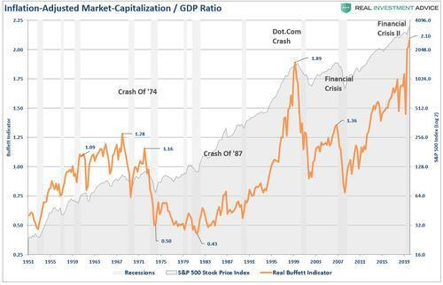该指标向我们显示,当 市场参与者与基础经济体之间发生“脱节”时,结果很差。值得注意的是,量化宽松并不能提高公司利润。市场与公司利润占GDP的比例之间的相关性很高,这不足为奇。该比率具有88%的相关性,证实了与经济的脱节。