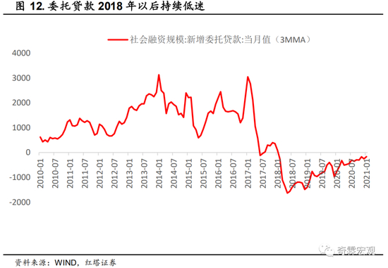 信托贷款是受到了去通道化、多重嵌套监管以及资管新规的冲击(产品的资金来源和项目期限必须匹配),可以预见的是,随着金融去杠杆措施和影子银行监管常态化,信托贷款未来的增量也不是很乐观,将持续拖累社融。