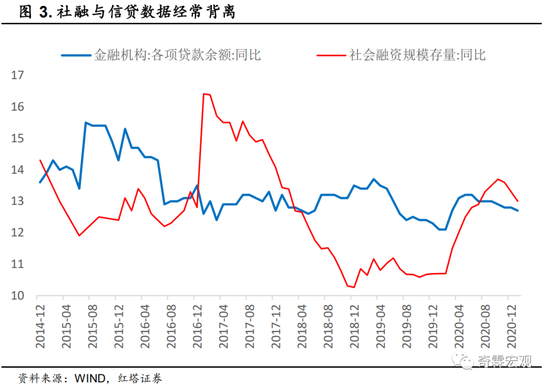 比如2020年四季度,因为疫情对经济的冲击减弱,经济陆续回归正常,货币政策也在回归常态化,不可能保持和疫情期间一样的宽松货币政策,所以市场都在讨论社融是不是要见顶了。