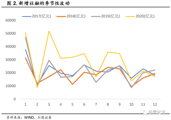 最明显的是,1月是新增社融最高的时候,几乎每年都如此。