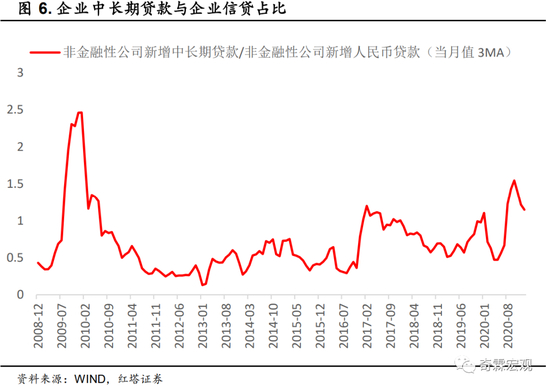 企业中长期信贷占比往上走的时候,也确实是对应经济复苏的时候。