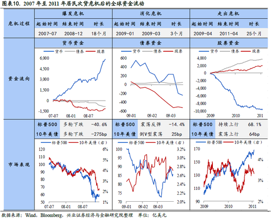 2)危机后,资金从货币重新流入债券时,全球股市震荡反弹。