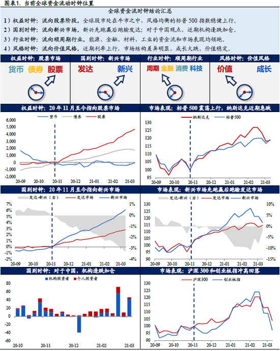 本轮全球资金流动时钟:新兴市场、顺周期行业、价值风格的股票