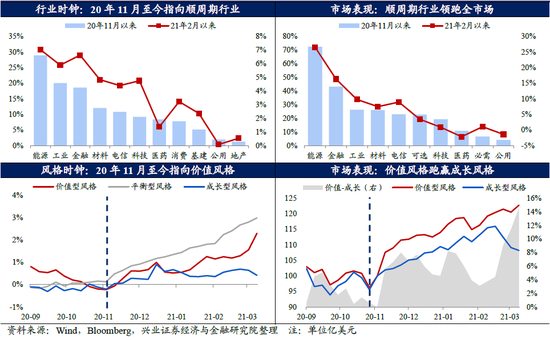 2020年4月新一轮金融周期开启之后,全球市场的风格时钟经历了三个阶段: