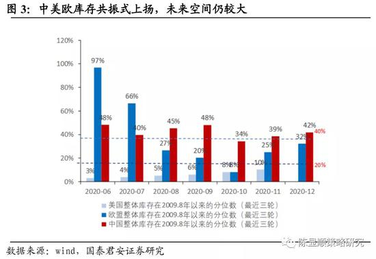 当前资本开支提升具备补库这一必要条件:补库动能强劲且空间大。当前行业库存整体连月回补,但仍处于中等偏下水平,未来仍有较大补库空间。2020年二季度前,疫情冲击导致了我国企业大量“被动累库”,但随着需求复苏,库存被动去化至中等偏下水平。叠加海外需求恢复较快,但产能受限,去库降至历史底部区域,国内库存自8月以来反弹,动能较强,且目前库存仍处于42%分位,未来上扬空间仍较大。