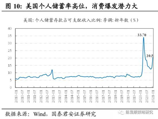 海内外居民存款高增、疫苗加速接种,为疫后可选消费复苏提供支撑。疫情期间海内外居民存款高增,以中美为例,2020年中国住户存款增加11.31万亿,而2019年增加额仅为6.72万亿。2020年美国个人储蓄存款增加11.3万亿美元,增加额创1930年以来新高,是次高值(2012年/257万亿美元)的4.4倍。全球新冠疫苗接种进度超市场预期,截止2021年3月17日,美国每百人新冠疫苗接种量达到33.8剂。