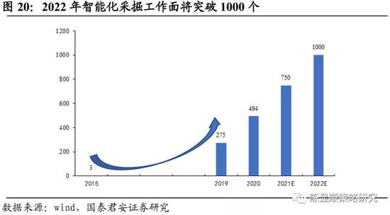 整体资本开支平稳向上,智能化改造大潮启动。当前国内煤矿智能化尚处于起步阶段,渗透率不足10%,未来五年将有大量煤矿进行改造,能够带动煤矿智能化设备市场规模快速增长。2022年智能化采掘工作面将突破1000个,行业未来市场空间超千亿。2020年,全国智能采掘工作面数量从2019年的275个提升至494个,同比增长80%。根据应急管理部要求,全国2022年底之前要形成至少1000个采煤工作面的智能化。