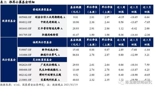 ▶ 基金优选:基于长期以来对机械设备行业高配置,在机械行业有较强投资研究能力两个维度选出十只基金。融通行业景气/创金合信工业周期精选/新华优选分红/中欧先进制造/汇丰晋信智造先锋/广发优企精选/民生加银城镇化/泓德战略转型/博时外延增长主题/宝盈鸿利收益。