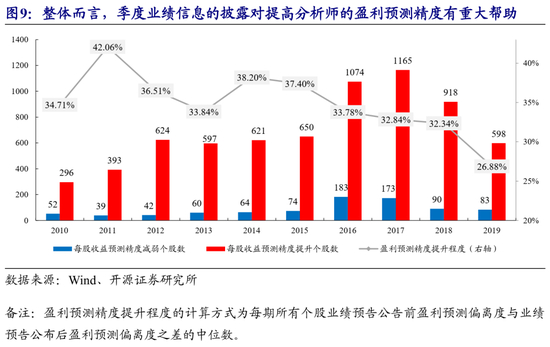 在上述分析中,我们已经知道在政策非强制性背景下,依然自愿公开自身季度经营业绩的公司历史表现往往优于不愿披露的同类公司,更加受投资者的偏好。我们认为这背后的原因是投资者对其信息披露透明度与质量的额外定价;与此同时,其业绩披露的相对高频使得投资者对其盈利预测精度相对更高,更容易把握。