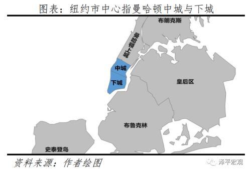 与西方相比,中国城市行政区划范围内土地面积较大,比如北京市面积高达1.6万平方公里,广州、上海、深圳分别为7434、6341、1997平方公里,而东京、伦敦、纽约、巴黎面积分别为2188、1577、789、105平方公里。为增强不同城市的可比性,我们分别选择在中心区以及距离市中心8公里左右的区域(我们此处将其定义为外围区)进行比较。具体来看,北京的中心区指东城区和西城区,外围区指四环与五环之间区域;上海的中心区指内环,外围区指中环与外环之间区域;纽约的中心区指是曼哈顿中城和下城,外围区指距离曼哈顿8公里左右的区域;伦敦的中心区指伦敦一区,外围区指三区与四区之间区域。