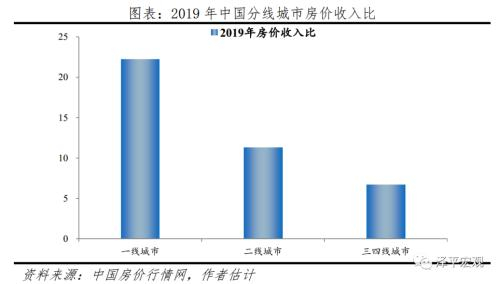 与一线城市相比,二线和三四线城市的绝对房价和房价收入比较低。从绝对房价来看,2019年12月一线、二线、三四线城市二手房均价分别为53987元/平方米、17063元/平方米、6978元/平方米。从相对房价来看,根据2019年城镇居民可支配收入,结合我们在2018年11月报告《中国住房存量测算:过剩还是短缺?》计算得到的套户比和人均住房面积等数据,一线、二线、三四线城市房价收入比分别为22.2、11.3、6.7。