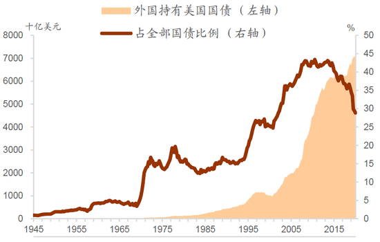 图表7: 疫情爆发以来外国投资者持有美国国债比例加速下滑