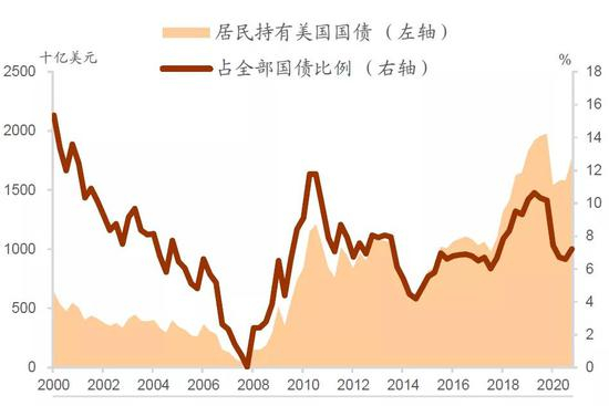 图表22: 疫情爆发以来居民部门持有美国国债规模下降
