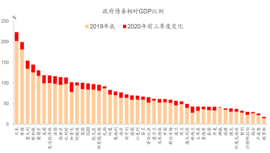 图表1: 2020年美国债务规模相对GDP比例创历史新高