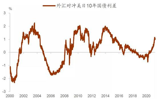 疫情爆发以来国外投资者持有美债比例下降,2月日本、欧洲减持美债加剧了美债收益率上升。美国国债持有者包括国内金融机构、居民、企业、州和地方政府、美联储和外国投资者。其中外国投资者是美国国债最大的购买者。金融危机后外国投资者持有美国国债比例下降,新冠疫情爆发后加速下滑。日本投资者上一财年结束前减持美债可能加剧了收益率上行。随着美日利差扩大,日本投资者可能开始增持美国国债。