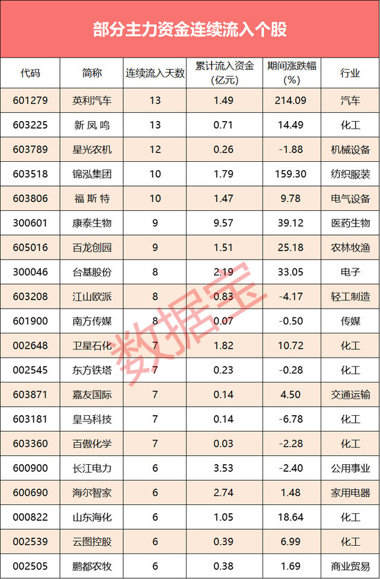 5股连续10天净流入