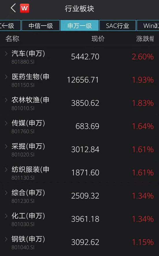 截至收盘,28个申万一级行业中,农林牧渔板块涨1.83%,纺织服装、采掘、化工板块分别涨1.61%、1.61%、1.34%。