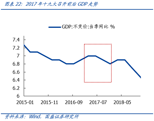 2012年十八大召开前,经济增速正在经历断崖下滑,新一轮货币财政刺激出台,连续降准降息下政策迎来全面放松。会议召开前,新一轮刺激仍在继续,三季度经济开始企稳。