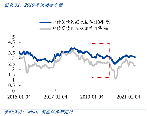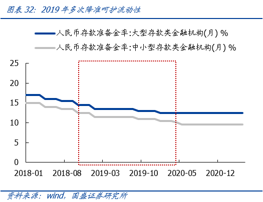 全年流动性宽松,三季度开始宽松力度进一步加大。2019年央行连续降准“降息”,2019年两次降准,分别是1月、9月,5月定向降准。2019年下半年以来LPR改革后,1年期LPR报价下降四次共计26BP至4.05%,1年期MLF在2019年11月下调。建国70周年庆典前,9月降准,8月与9月相继下调LPR,流动性维持宽松格局。