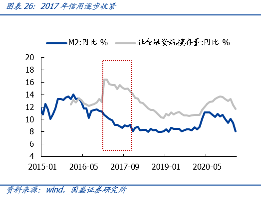 2017年去杠杆基调下信用与货币双紧,十九大召开前流动性环境保持平稳。2017年开始政策开始收紧,海内外央行同时“缩表”,中美进入加息周期。1月24日历史上首次上调MLF利率,是政策利率近6年来首次上调,意义等同于加息,标志着货币政策正式转向收紧。此后2月3日、3月16日上调逆回购与MLF利率,两次上调SLF利率。2017年货币政策保持稳健中性,全年国债利率上行,去杠杆、防风险的政策基调下信用持续收紧,银监会“三三四”、MPA考核令流动性进一步收紧,M2与社融持续下行。十九大召开前,货币政策保持平稳,9月实行普惠金融定向降准、MLF利率稳定、央行自8月份起就连续超额续作MLF。但11月资管新规征求意见稿发布意味着政策再度收紧,12月跟随美联储加息再度上调MLF及逆回购利率。