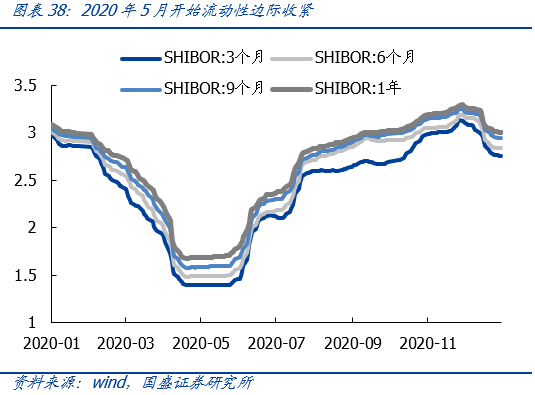 疫情后国内流动性大幅放松,下半年边际收紧回归常态化。疫情爆发后全球央行大幅扩表,各国纷纷推出大规模财政刺激计划,货币持续超发,而国内政策宽松力度较海外更加克制。上半年逆周期调节政策持续加码,随着经济复苏不断深化,叠加监管层整治资金空转套利,五月下旬起非常规货币政策开始有序退出,利率中枢逐步上移,宏观流动性开始边际收紧。临近十九届五中全会召开前,10月金融街论坛会上,央行时隔1年重提“把好货币总闸门”,但并未改变流动性合理充裕表述,政策意图应更接近于中性货币条件下的稳信用。整体来看,会议前货币政策边际收紧,信用端仍在持续扩张。