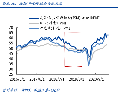 庆典前经济下行压力加大,全球经济共振衰退。2019年全球经济共振衰退,内外部冲击下国内GDP下滑至6%以下,制造业投资跌至2%-3%左右的历史低位,PMI多月处于枯荣线之下,出口转负、固定资产投资下滑至5%以下,经济增长动能疲软。同时,全年受中美贸易摩擦反复扰动,1月缓和、5月恶化、6月缓和、8月恶化、9月推迟关税,建国70周年前,中美摩擦告一段落。