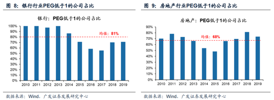 传统PEG选股方法常常会“高估”特定类型的行业的估值与盈利的匹配程度。2010年后,随着中国经济逐渐进入“存量经济”时代、监管方式也从“粗放式监管”转变为“精细化监管”,个别行业如银行、房地产的盈利潜力中枢下行。在此背景下,市场对银行、地产等行业的盈利定价偏低,导致这些行业的市盈率中枢维持在低位,天然PEG较低,往往整个行业PEG低于1的个股占比大幅高于50%。因此当我们用传统方法简单用PEG<1筛选个股时,容易“高估”个别行业的估值与盈利的匹配度,选入较多的此类行业个股。