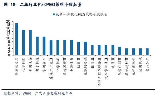 从更为细分的二级行业入选个股数量看,策略最新一期调仓后个股数量前十的二级行业是计算机应用(19只)、化学制药(15只)、专用设备(15只)、电子制造(11只)、家用轻工(11只)、房地产开发(9只)、化学制品(9只)、医疗器械(9只)、电源设备(9只)、证券(8只)。从细分行业“盈利+估值”匹配度来看,消费行业中化学制药、家用轻工、医疗器械、汽车零部件、食品加工的入选个股较多;TMT中则是计算机应用、电子制造、互联网传媒、元件、光学光电子等行业的入选个股较多;周期性行业中,专用设备、房地产开发、化学制品、电源设备、环保工程及服务、包装印刷、其他建材、通用机械等细分行业的入选个股较多;金融行业当中则是证券、银行的入选个股数量排名靠前。