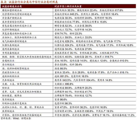 由于证监会行业分类与较为常用的中信行业分类存在一定的差异,为方便读者对比,以下附上了行业对照表以供参考。