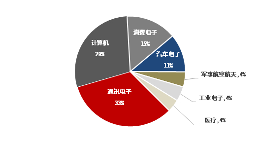 随着5G的快速发展,基站等基础设施的建设对于通信设施数量需求增大,推动通信领域电子设备的市场规模扩张。