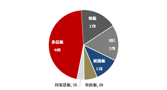 从细分产品结构来看,多层板、FPC及HDI板等产值占比较高,封装基板及FPC增速较高。