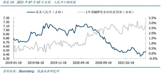 2021年07月03日当周,离岸人民币汇率上升至6.47,1年期NDF上升至6.66。