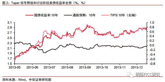 2013年5月美联储首次释放了Taper信号。2013年5月1日,美联储公布了4月30日至5月1日的议息会议声明,声明显示“随着劳动力市场或通胀前景的变化,委员会准备增加或减少购买步伐,以保持适当的政策宽松”,首次提及可能减少购债步伐;此后在5月22日发布的会议纪要显示“如果当时收到的经济信息显示出足够强劲和持续增长的证据,一些与会者表示愿意最早在 6 月会议上下调购买流量”;5月22日,时任美联储主席伯南克在国会发表证词,在提问环节,伯南克表示,如果就业市场持续改善,并且我们对改善势头的持续有信心,那么将在未来几次会议上减少购买规模。在伯南克的讲话和议息会议纪要共同冲击下,市场反应剧烈,出现了所谓的“缩减恐慌(taper tantrum)”。