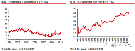 从历史看,在经济从危机中走出后,疫情中积攒的储蓄率将持续释放消费动能。无论是大萧条还是2008年金融危机,美国居民消费在经济动荡期间均经历相对停滞或滑坡。同时随着危机解除,经济复苏和恢复常态,此前提到的预防性储蓄将大大下降,在危机期间积攒的储蓄率回落下持续释放一年左右的消费增长动能。此轮积攒在储蓄率中的消费动能预期将遵循同样的逻辑,同时更高的储蓄率预计或将带来更加强劲的消费,推动经济在未来一年内快速复苏。