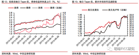 在上轮紧缩周期中,市场对于突如其来的Taper信号并没有足够预期,导致了当时的“缩减恐慌”。从对上轮紧缩周期的回顾中可以看出,在2013年5月22日伯南克暗示或将开始缩减购债规模时,由于此前没有明显铺垫和沟通,市场对于政策转向几乎没有预期,导致信号一出美债利率快速上行,全球金融市场大幅震荡,尤其是新兴市场因资金大量流出而剧烈波动。