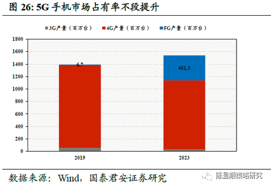 5G时代元年助推半导体下半年强势发展。2019年10月31日,三大运营商同时正式发布5G套餐,工信部宣布5G正式启动商用,并预计在2020年扩张5G商用服务。国际层面,美日韩欧均计划在2020年实施全国性部署。2019年全球5G手机市场占有率仅为6.7%,而据IDC预测在2023年,全球5G手机的市场占有率会快速提升至26%。随着国内外5G手机的不断普及与推广,会带来大量对于5G芯片的需求量,利好国内通讯、半导体、电子行业。