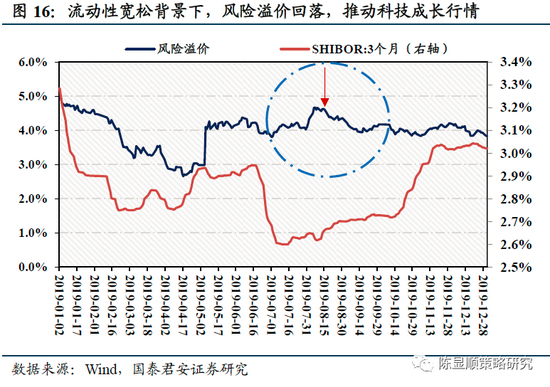 货币政策加持芯片产业政策助推股市走出8月悲观行情。央行于8月15日,8月26日和9月17日开展了中期借贷便利操作,三次总共释放7500亿元资金,同时从8月15日至9月20日,央行逆回购金额总量达到11100亿元。与此同时,利好政策出台助力高新科技企业创新发展。随着美国不断加强对于华为等高新科技公司的制裁,甚至决定向华为断供芯片等一系列操作,国务院决定逐步提高中国国产芯片自给率,并发布了《新时期促进集成电路产业和软件产业高质量发展的若干政策》助力芯片企业发展。这一系列操作逐步稳定了市场情绪,使得从8月15日开始直至年底,市场风险溢价逐步小幅下行,市场风险偏好逐步抬升,改善DDM模型分母端。
