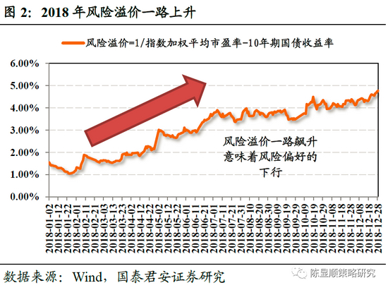 回溯2018年,“去杠杆”政策叠加“贸易战”对市场带来了巨大恐慌情绪。2018年全年A股表现较差,各大主要指数年内下跌幅度均超15%,其中中小板指下跌幅度高达37.75%,上证指数年内下跌24.59%。18年的低迷走势与宏观经济是密不可分的,在“去杠杆”政策的影响下,社融大幅回落,风险溢价飙升,叠加中美贸易摩擦升级,市场悲观情绪达到高点,A股投资者信心严重受挫。从DDM模型看,风险偏好的下降恶化分母端,从而使得A股一路下跌。