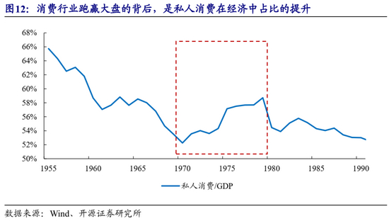 2.2 第二阶段(1974-1978,政策调整期):石油危机下高耗能行业跑输,产业转型行业领跑,私人消费带动消费行情