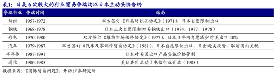 这一时期日本产业政策的另一个特点,是在国际社会的压力下对于贸易摩擦相关产业进行“自愿”的限制。随着日本制造业的兴起,美国等西方国家对日本产业政策严重不满,并引发了贸易争端。在日美六次较大的行业贸易争端中,日本都主动调整产业政策,限制相关行业的出口,以降低与美国的摩擦。