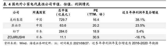 渠道变革是国产企业扩大份额的良机。当前“直播带货+社交电商”成为国内小家电的主销模式,新兴的渠道为市场注入了更多机遇,据陕西经济联合会援引奥维云网数据,2020年小家电11个品类零售量线上占比达82.8%。国内品牌将利用电商渠道进行精准的内容营销,和国外品牌拉开差距。新兴企业通过线上渠道异军突起,从具体企业来看,小熊电器以“萌家电”作为品牌战略,充分利用社交电商深入长尾市场,借助酸奶机、煮蛋器、豆芽机等细分厨房小家电产品打开销量。北鼎则切入高端小家电细分市场,以线上直销为主,打造了养生壶、烤箱、蒸锅等的多爆品矩阵。新兴企业势头正猛,据观研天下统计,小熊电器等企业将老牌企业美的、苏泊尔、九阳的市场份额压缩至2021年一季度的64.5%。未来,随着消费升级、人群细分和多样化的需求,我们认为小家电行业将呈现百舸争流的局面,朝着功能更加集成、产品更加个性化的方向发展,国内企业将持续保持优势。从代表性公司来看,我国家电龙头美的集团积极布局小家电业务,市值及盈利增速远超松下等老牌家电企业。