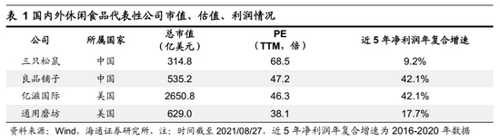 当前国产品牌的“集中品类打法”效果显现,即瞄准儿童、银发族、健身族等细分人群,专注打造细分品类的超级爆品。以儿童零食市场为例,根据中国食品安全信息追溯平台网援引中国副食流通协会、农业农村部食物与营养发展研究所、天猫美食、良品铺子股份有限公司《儿童零食市场调查白皮书》的数据,截至2019年末,我国16周岁以下的儿童人口数量接近2.5亿人,庞大的儿童人口数量酝酿了潜力巨大的市场需求,儿童零食市场迅速崛起,预计从2019年到2023年,儿童零食市场预计将以10%到15%的复合年增长率稳定增长。妙可蓝多等国牌及时把握市场,通过与“汪汪队”、“精灵宝可梦”等IP联名拉近国人与奶酪产品之间的心理距离,凭借儿童奶酪棒单品发力儿童新市场。2020年,妙可蓝多奶酪板块收入较上年同期增长125.15%,占公司主营业务收入比例为72.91%。以麦片市场为例,国牌王饱饱为解决卡乐比、桂格等海外品牌裸燕麦口感不佳、膨化型麦片营养不足的问题,创造性地利用低温烘焙技术保留产品的丰富口感与必要营养成分,主动贴合国人消费需求,并收获了广泛的市场好评:据见微评论搜狐号数据,在2019年首次参加双十一活动时,王饱饱在69分钟内销量突破1000万元。但目前我国休闲食品代表性公司市值远低于国外公司,未来国产休闲食品品牌有望向健康化、高端化继续升级,并进一步丰富品牌产品矩阵,满足日渐多样化的消费场景。