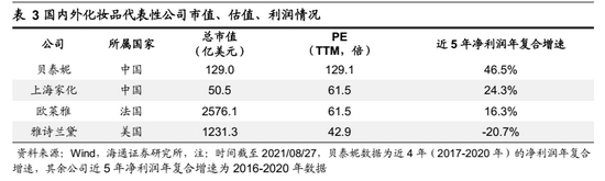 国内厂商突围的背后,是国内品牌以中国风的设计感和文化底蕴、KOL引流和直播带货等新营销模式和更具性价比的产品在细分赛道脱颖而出。功能性护肤品赛道中,薇诺娜、玉泽、润百颜等国内品牌强势崛起。薇诺娜(贝泰妮旗下品牌)多年深耕敏感肌领域,根据贝泰妮招股说明书,2019年公司旗下“薇诺娜”品牌被行业权威杂志《化妆品报》评为“敏感肌护理品类第1名”,2018年-2020年,公司旗下“薇诺娜”品牌已连续三年获得天猫金妆奖。彩妆赛道中,完美日记以口红和眼影为核心产品、在小红书精准投放打爆声量,花西子主打蜜粉、散粉和极具东方美学的设计,两者在彩妆领域迅速提升销量。据中商情报网援引星图数据的统计,完美日记和花西子跻身2020年和2021年618全网美妆行业销售额前五大品牌。从国内外代表性化妆品上市公司来看,国内企业贝泰妮、上海家化市值仍小,但利润增速远高于国际化妆品龙头公司。总体而言,目前国内品牌化妆品主要以大众市场为主,二三线城市消费者是主力,未来有望加强研发能力,进军高端市场,并向具有多样化品牌和产品的化妆品集团发展,保持长久的竞争力。