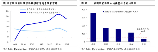 运动鞋服赛道广阔,国内品牌赶超海外大牌的势头正猛。随着生活水平的提高,国民运动意识提振、运动时尚兴起,据前瞻产业研究院援引Euromonitor数据显示,2014年以来国内运动鞋服行业复合年增长率达16.4%。21年8月国务院印发《全民健身计划(2021-2025年)》,将促进运动鞋服发展,行业景气度长期向好。整体上看,我国市场依旧由海外品牌占据主导地位,根据Euromonitor 的数据,2020年前20大市占品牌中,国内品牌的市占率合计仅为34.0%,低于海外品牌的59.0%,相比之下美国运动服装市场则由本土品牌主导,市占率前20名里美国品牌占比达43%。但可喜的是,近年来国产品牌的活跃度、话语权明显上升,与海外知名品牌的差距正快速缩小。从市占率来看,安踏与阿迪达斯的差距逐渐缩小,20年安踏的市场份额提升至15.4%,已接近阿迪达斯的17.4%。