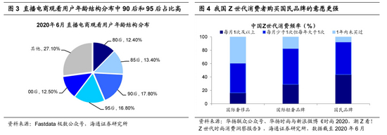 年轻世代消费群体为国货崛起支撑起广阔空间。当前95后、00后为代表的“Z世代”收入增长潜力更大,拥有浓烈民族自尊心、自豪感的年轻世代逐渐成为社会活跃消费群体。据KANTAR与QQ联合发布的《Z世代消费力白皮书》,到2020年Z世代有望占据整体消费力的40%。按照2020年社会消费品零售总额39.20万亿测算,95后的消费力约为15.68万亿。由于Z世代的成长条件更为优渥,整体消费能力和意愿更高,且对强盛国力和中华文化具有与生俱来的认同感,与国外高端品牌相比,他们更会青睐性价比更高的国产品牌。