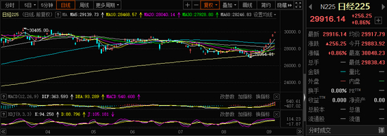日经225指数涨0.86%,收于29916.14点,连续7个交易日上涨,创四个月新高。此前首相候选人表示如当选将推出大规模经济刺激计划。