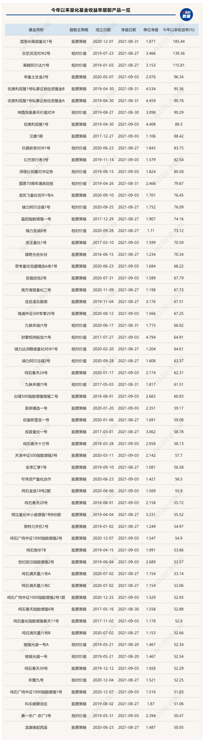 根据私募排排网数据,今年前8个月20家百亿级量化私募已经完成近2000只新基金的备案,而同期百亿级私募新基金发行量为4183只,即量化私募新产品发行数量占据了近一半的比重。